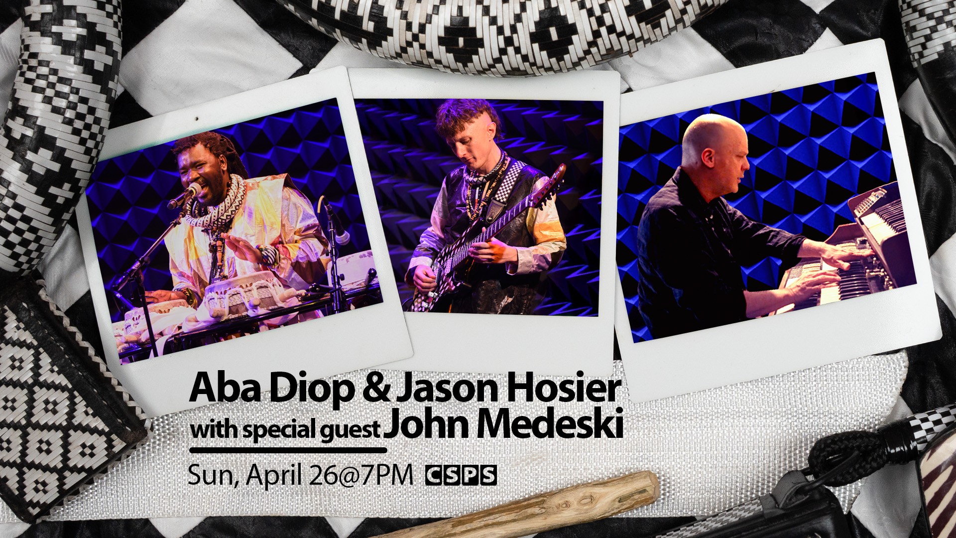 What Aba Diop, Jason Hosier, and John Medeski share is a belief that music has no borders. This is music made in the spirit of the griot which is alive and built to move people. As Aba himself puts it: "When you hear our sabar, you forget your problems. That's the power we carry." Come hear it for yourself.