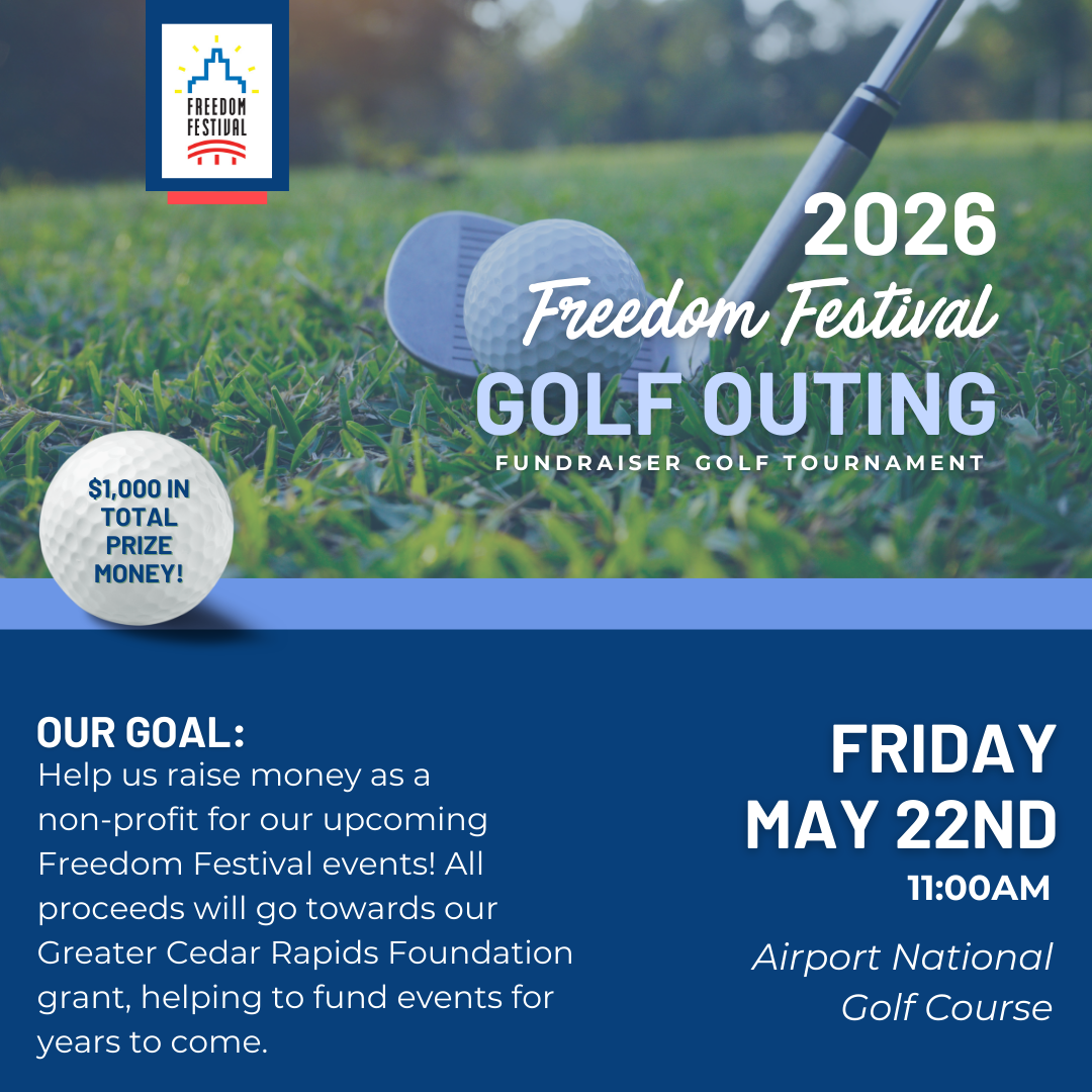Tee off for a cause! Join us for a fun-filled day of golf in support of the Freedom Festival! All proceeds will benefit our Greater Cedar Rapids Community Foundation grant, helping fund events for the the coming years.
