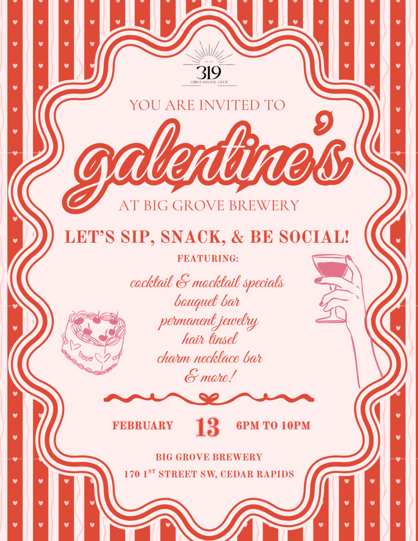Mark your calendars for our Galentine's party hosted by 319 Girls Social Club x Big Grove Cedar Rapids! 💌