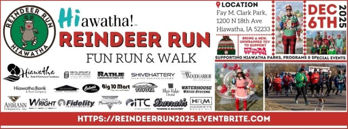 Packet Pick Up will be available on race morning Saturday, December 6th from 8-9 a.m. at Hiawatha Clark Park (N. 18th Avenue, Hiawatha, IA 52233)