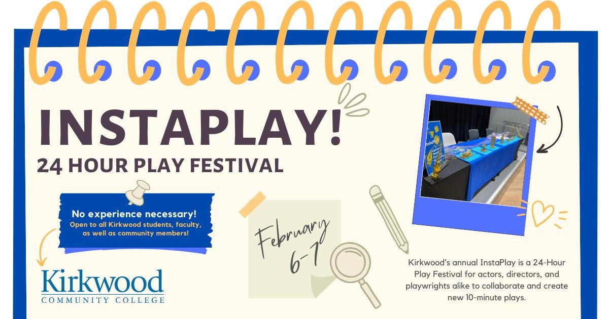 Join us for Kirkwood Community College’s 4th Annual 24-Hour Play Festival - InstaPlay! Open to all Kirkwood students, faculty, and staff, and members of the community. Participants will team up to write, direct, and act in brand new 10-minute plays. Whether you’ve never performed or written before, or you’re a seasoned theatre person, this is the festival for you. Each playwright will be paired with a playwright mentor to guide you along the way in writing your play in under half a day. Try something new and plan to join us for InstaPlay 2026!