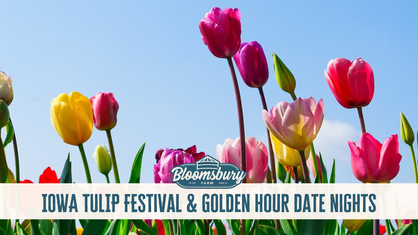 The tulips are blooming—and it’s one of the most beautiful times to visit Bloomsbury Farm. Stroll through thousands of vibrant flowers, soak in the fresh air, and enjoy a picture-perfect spring day on the farm. Whether you're planning a family outing, a date, or a day with friends, the Iowa Tulip Festival is a can’t-miss seasonal experience.