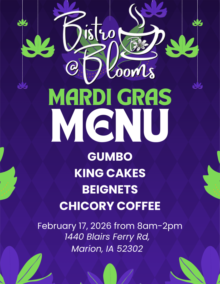 For one day only, we’re bringing Mardi Gras to Bistro at Blooms, and this menu has been a full team labor of love!!!