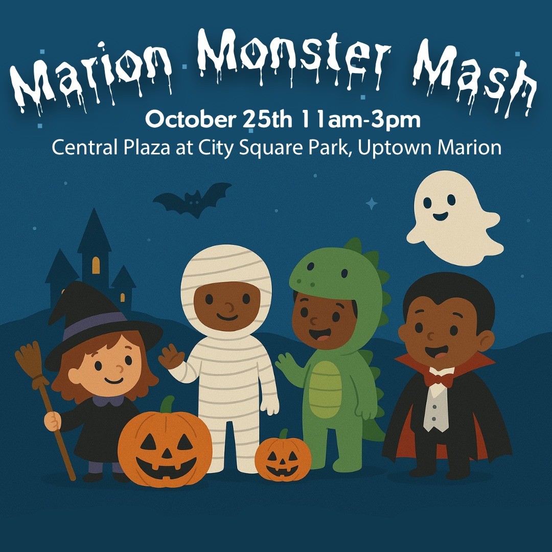 Join us in Uptown Marion for the first-ever Marion Monster Mash on Saturday, October 25, from 11:00 a.m. to 3:00 p.m. in Central Plaza. This new Halloween celebration, presented by FSB, City of Marion, and Uptown Marion, is packed with family-friendly fun - a photobooth, face painting, temporary tattoos, pumpkin decorating, yard games, spooky stories, and a parade.