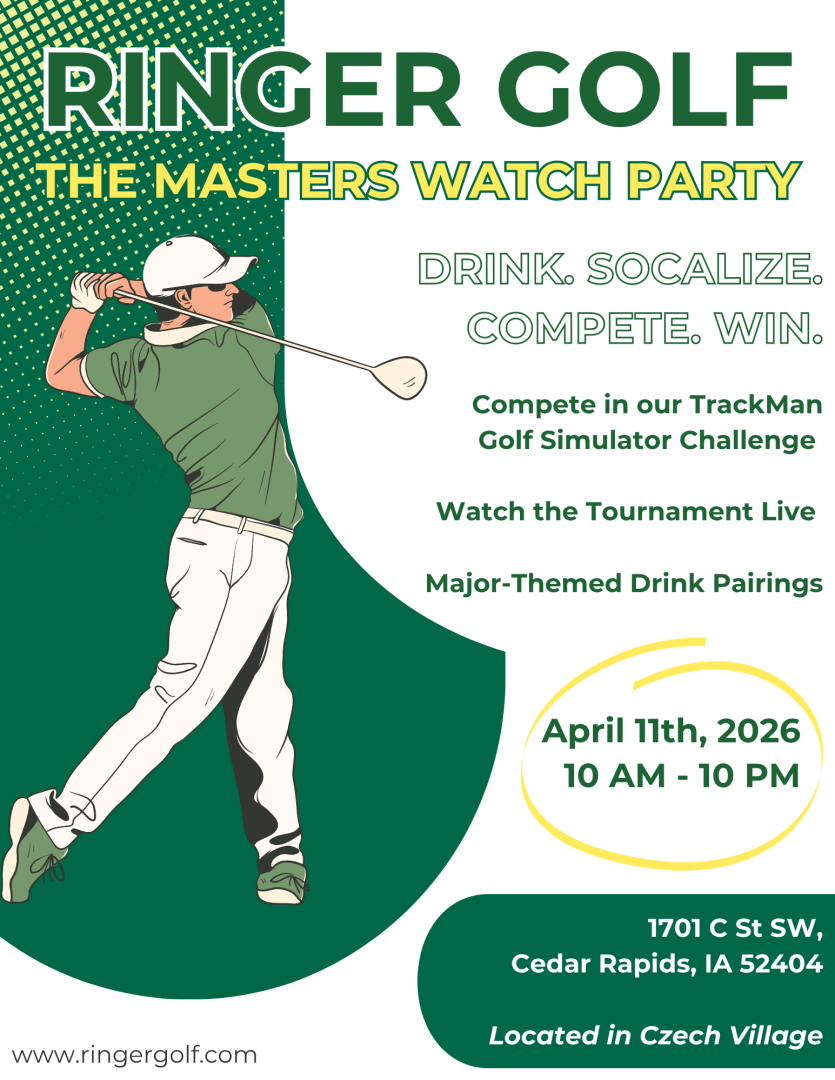 Join us at Ringer Golf for an unforgettable Masters Watch Party on April 11th! Experience all the excitement of golf’s most iconic tournament while enjoying a lively atmosphere filled with drinks, friendly competition, and great company.