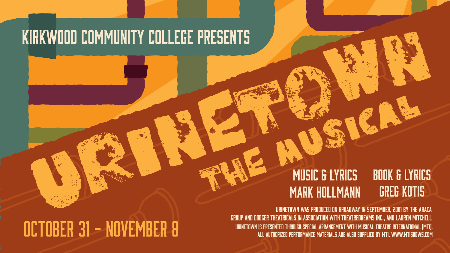 Join us for Kirkwood Community College's fall musical, "Urinetown, the Musical"! The show runs Oct. 31-Nov. 2 and Nov. 6-8. Tickets are available at the door or in advance at: https://kirkwoodarts.simpletix.com/.